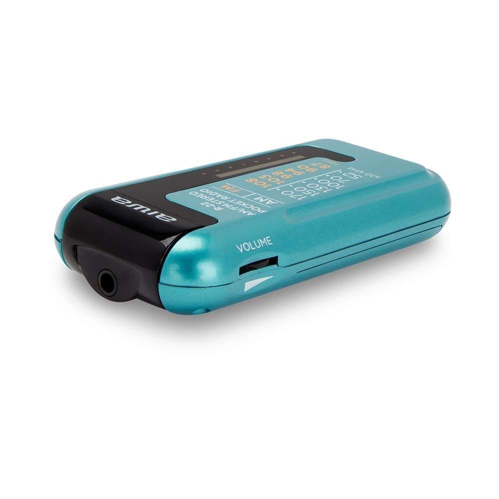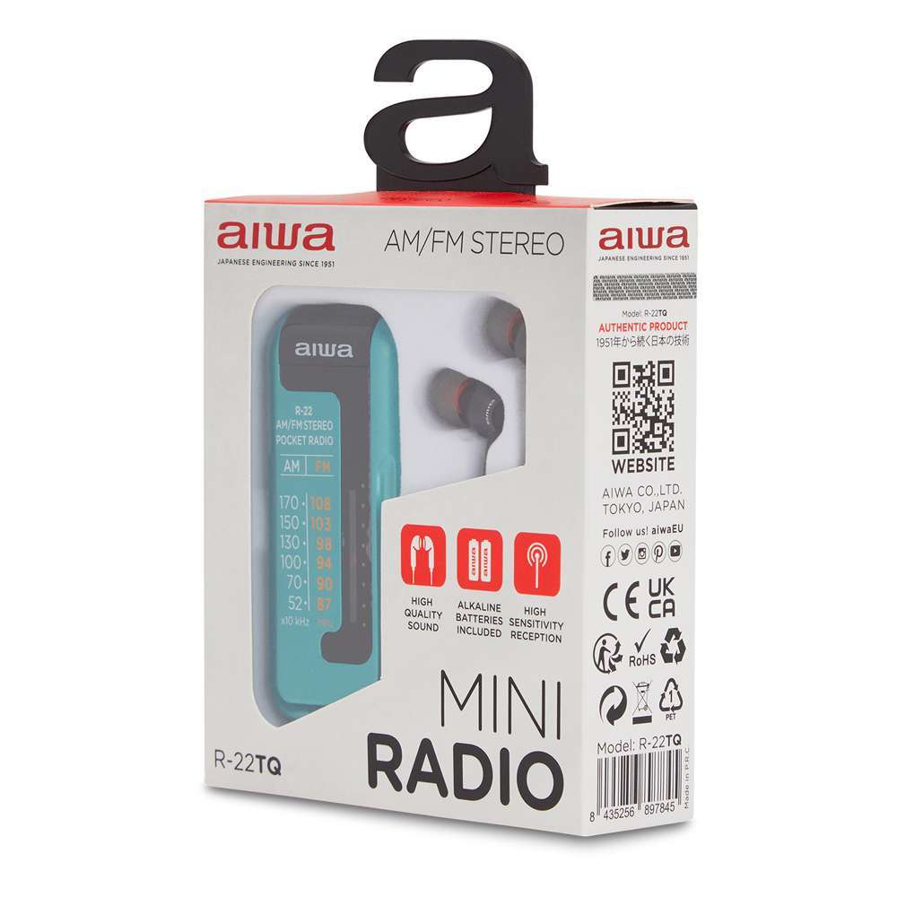 AIWA MINI POCKET RADIO WITH EARPHONES TURQUOISE