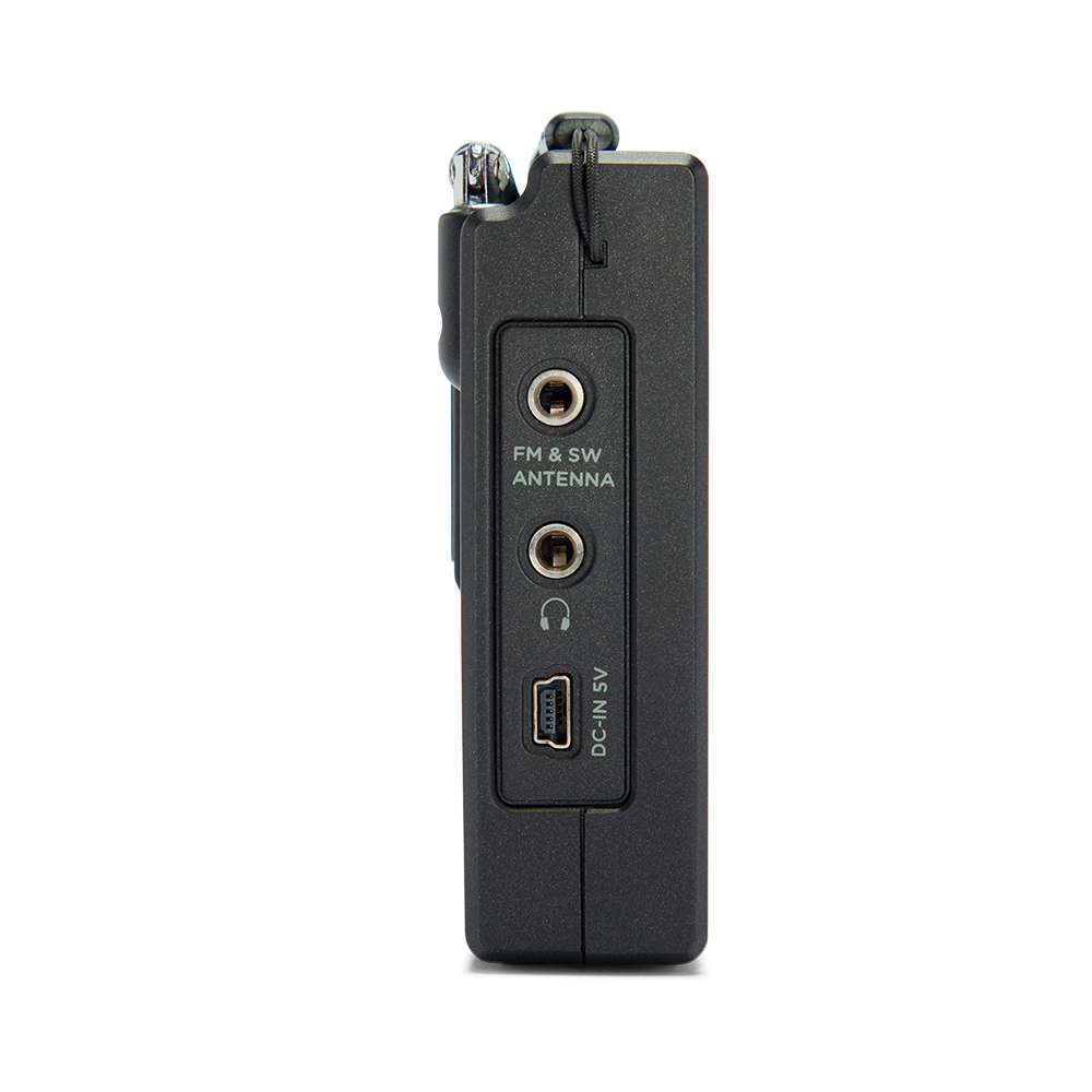 Γενικά Χαρακτηριστικά Ραδιόφωνο πολλαπλών ζωνών (4). PLL DSP FM στερεοφωνικός δέκτης / SW / MW / LW. Προδιαγραφές ραδιοφώνου World Band Broadcasting. Δέκτης ETM (Easy Tuning Mode) με ATS (Auto-Tuning storage). 550 προεπιλογές σταθμών. Αυτόματος συντονισμός σάρωσης με προ-ακρόαση λίγων δευτερολέπτων τόσο για συχνότητα όσο και για μνήμη (VF / VM). Συντονίστε χειροκίνητα την επιθυμητή συχνότητα Ψηφιακή ένδειξη κλίμακας συχνότητας. Ευρυζωνική προσαρμογή AM. Ρύθμιση συντονισμού MW Έκδοση ΕΕ / ΗΠΑ. Περιστρεφόμενη τηλεσκοπική κεραία FM και βοηθητική κεραία. Προδιαγραφές Σύνδεσης AUX IN (3,5mm). Υποδοχή ακουστικών (3,5 mm). Παροχή ηλεκτρικού ρεύματος Τροφοδοσία: 3 x Προσαρμογέας AA ή DC 5V (δεν περιλαμβάνεται) ή καλώδιο mini USB (περιλαμβάνεται) Χαρακτηριστικά Διπλός συναγερμός με λειτουργία Snooze και Sleep. Βομβητής ή συναγερμός ραδιοφώνου. Οθόνη πολλαπλών λειτουργιών. Ελεγχος έντασης. Επιτραπέζια βάση. Λουράκι καρπού. Διαστάσεις: 135x83x27mm