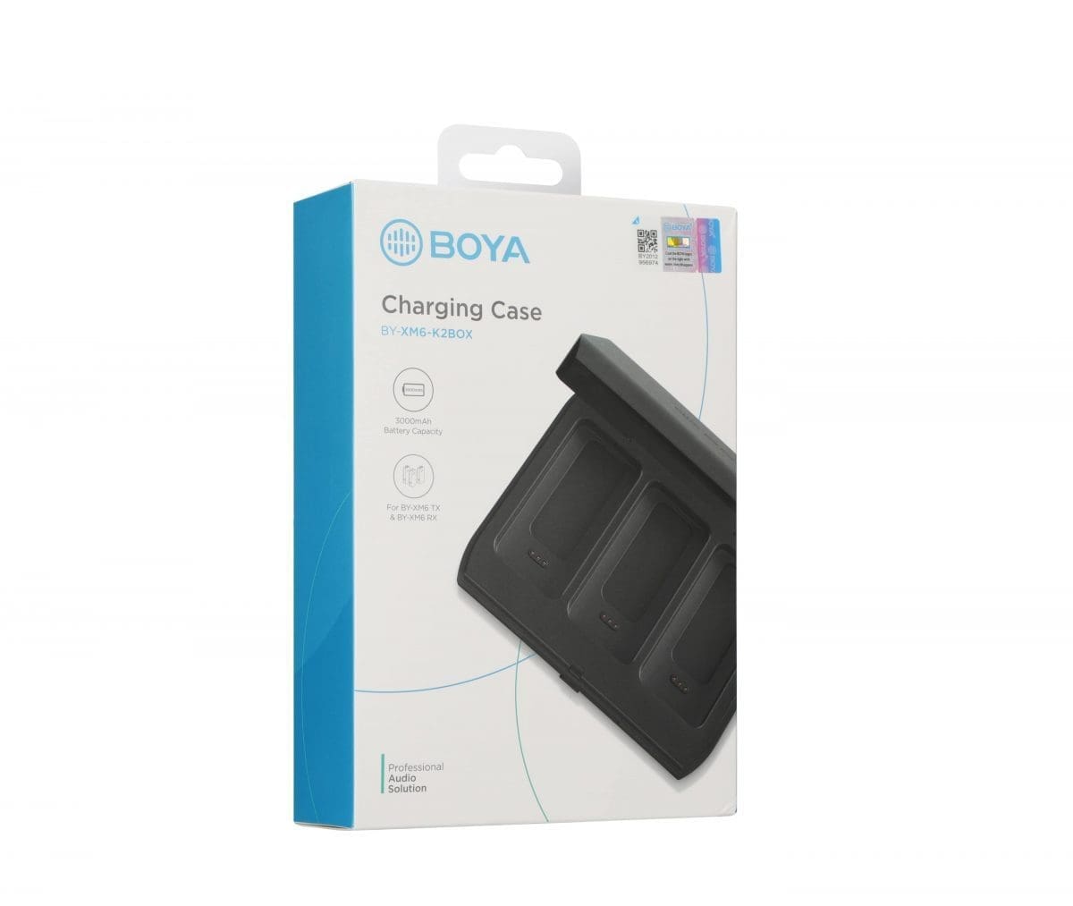 Μια φορητή αλλά ισχυρή θήκη φόρτισης, η οποία το καθιστά εύκολα μεταφερόμενο σε εξωτερικούς χώρους. Με την ενσωματωμένη ισχυρή μπαταρία, η θήκη φόρτισης επιτρέπει την ταυτόχρονη πλήρη φόρτιση τόσο του δέκτη όσο και των πομπών, χωρίς να απαιτείται καλώδιο. Επιπλέον, η ένδειξη ισχύος στη θήκη φόρτισης επιτρέπει τον εύκολο έλεγχο της χωρητικότητας της μπαταρίας καθώς και της κατάστασης φόρτισης. Power Requirements USB-C DC 5V/1.5A Power Capacity 3000mAh Box’s Charging Time 4.5 hours Weight 200g Dimensions 125×96.8×35.6mm Operating Temperature -10°C έως 50℃ Storage Temperature -20°C έως +55℃