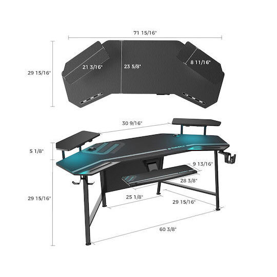 - Μεγάλη επιφάνεια εργασίας 180 x 76εκ. με πλήρης επιφάνεια ποντικιού