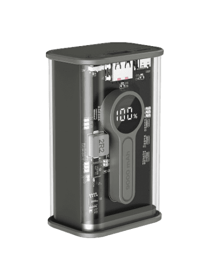Το power bank διαθέτει ισχυρό ενσωματωμένο LED φακό – χρήσιμο για κάμπινγκ, πεζοπορία ή διακοπές.