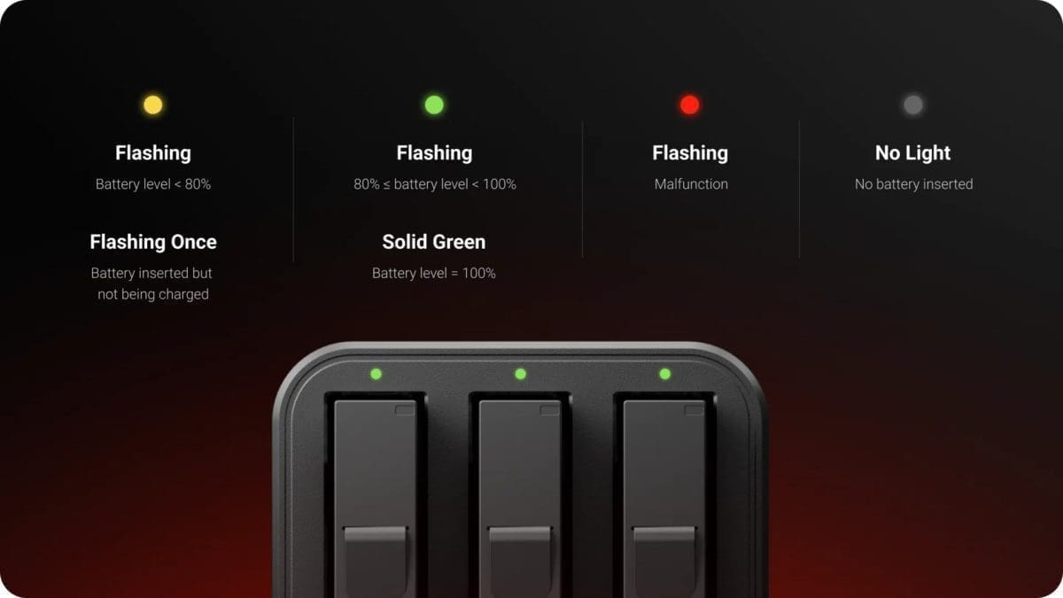 Κόμβος γρήγορης φόρτισης Έξυπνη φόρτιση για να τροφοδοτείτε με ενέργεια τη δράση. Αποδοτική, ταυτόχρονη γρήγορη φόρτιση. Φορτίστε με ασφάλεια έως και τρεις μπαταρίες ταυτόχρονα στη μέγιστη ισχύ. Κάθε υποδοχή φορτίζει ανεξάρτητα, ώστε να μην χρειάζεται να ανησυχείτε για υπερφόρτιση. Λογικός φωτισμός. Ξεκάθαρες και εύκολα κατανοητές φωτεινές ενδείξεις κατάστασης. Γνωρίστε την κατάσταση της μπαταρίας σας με μια ματιά.