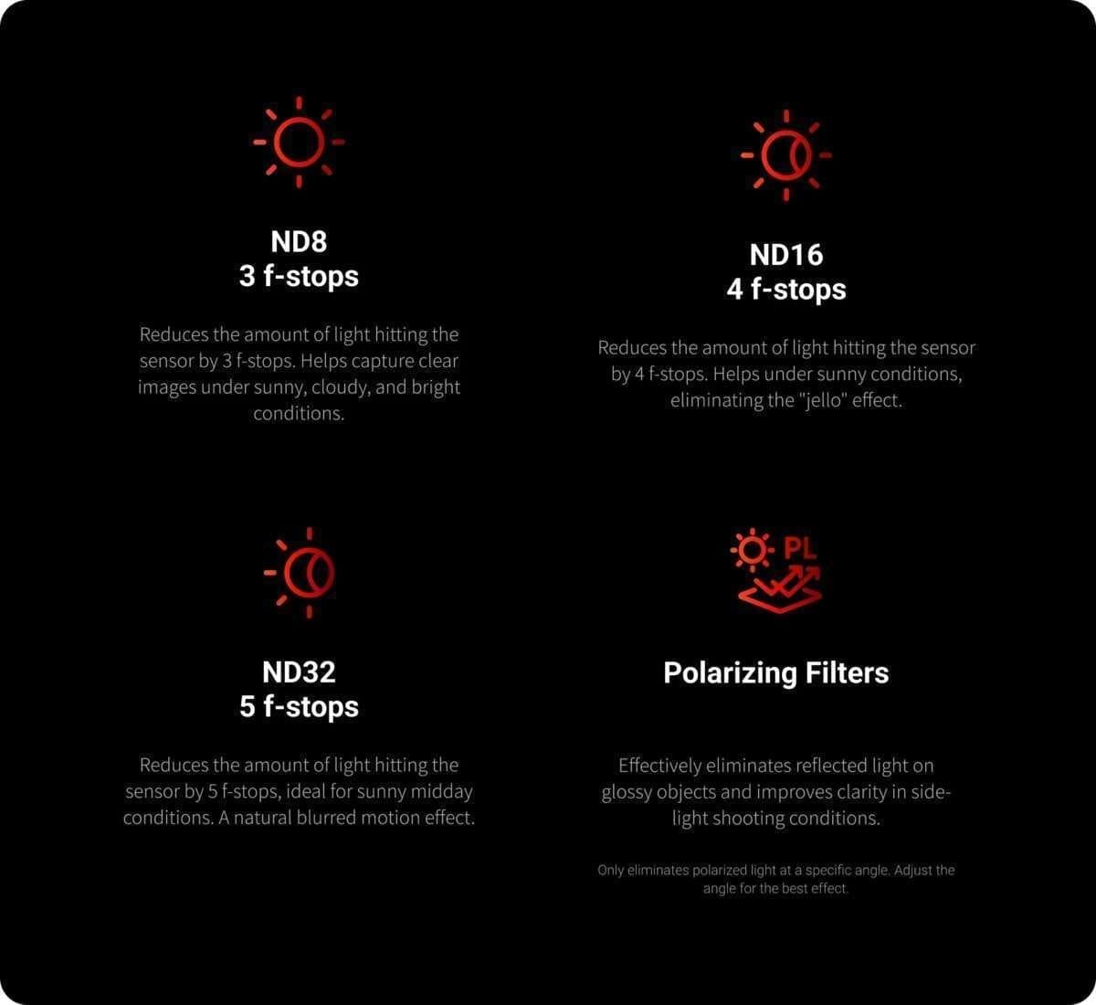 Σετ φίλτρων ND Προσθέστε μια κινηματογραφική πινελιά. Εκπληκτικά αποτελέσματα ακόμη και σε φωτεινές ημέρες. Επιλέξτε από τα φίλτρα ND8, ND16, ND32 και PL για ισορροπημένα χρώματα και αντίθεση σε κάθε φωτισμό. Κινηματογραφικό motion blur. Προσθέστε μια πινελιά Χόλιγουντ στις λήψεις σας με το ατμοσφαιρικό motion blur. Εφέ μακράς έκθεσης. Πετύχετε μοναδικά εφέ μακράς έκθεσης τη νύχτα, όπως λωρίδες από τα φώτα της πόλης ή εντυπωσιακά ίχνη αστεριών. Εξαφανίστε την αντανάκλαση. Αφαιρέστε το πολωμένο φως κάτω από πλευρικό φωτισμό με το φίλτρο PL, μειώνοντας τις αντανακλάσεις στο νερό και ενισχύοντας τα χρώματα του ουρανού. Περιλαμβάνει φίλτρα ND8, ND16, ND32 και PL για διαφορετικά επίπεδα μείωσης του φωτός. Το φίλτρο PL βοηθά στην απομάκρυνση του πολωμένου φωτός, ένα απαραίτητο στοιχείο για λήψεις τοπίου. Το σετ φίλτρων ND Insta360 Ace Pro 2 παρέχεται από την εγγύηση διάρκειας ζωής της Freewell. Η ισόβια εγγύηση ποιότητας που παρέχεται από την Freewell δεν μεταβιβάζεται. Η ισόβια εγγύηση δεν επεκτείνεται σε μεταχειρισμένα αντικείμενα ή αντικείμενα που αγοράστηκαν από μη εξουσιοδοτημένους πωλητές. Για να διεκδικήσετε την εγγύηση, επισυνάψτε μια απόδειξη με ημερομηνία και όνομα προϊόντος και το τιμολόγιο αγοράς και στείλτε το με email στην Freewell στη διεύθυνση care@freewellgear.com.