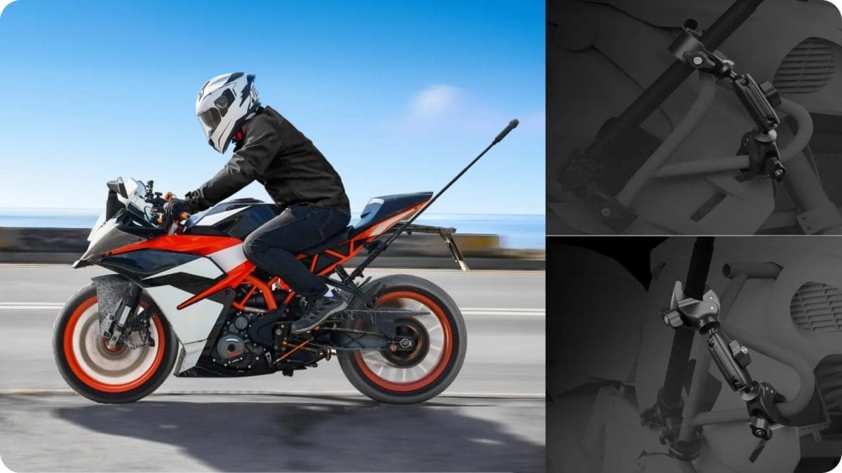 Motorcycle Selfie Stick Support Clamp Προοπτικές τρίτου προσώπου, πιο σταθερές από ποτέ. Διπλή στήριξη. Συμβατό με το Insta360 Heavy Duty Clamp Mount και το Motorcycle U-Bolt Mount για ακόμα μεγαλύτερη σταθεροποίηση. Ασφαλής, υποστηριζόμενη, σταθερή. Απεριόριστες δυνατότητες. Ρυθμιζόμενη σχεδίαση double ball head, ώστε να μπορείτε να έχετε τη σωστή γωνία κάθε φορά Δυνατή και ανθεκτική. Ισχυρό και αξιόπιστο σώμα από κράμα αλουμινίου με αντιολισθητικό σχεδιασμό. In the box Motorcycle Selfie Stick Support Clamp User Manual
