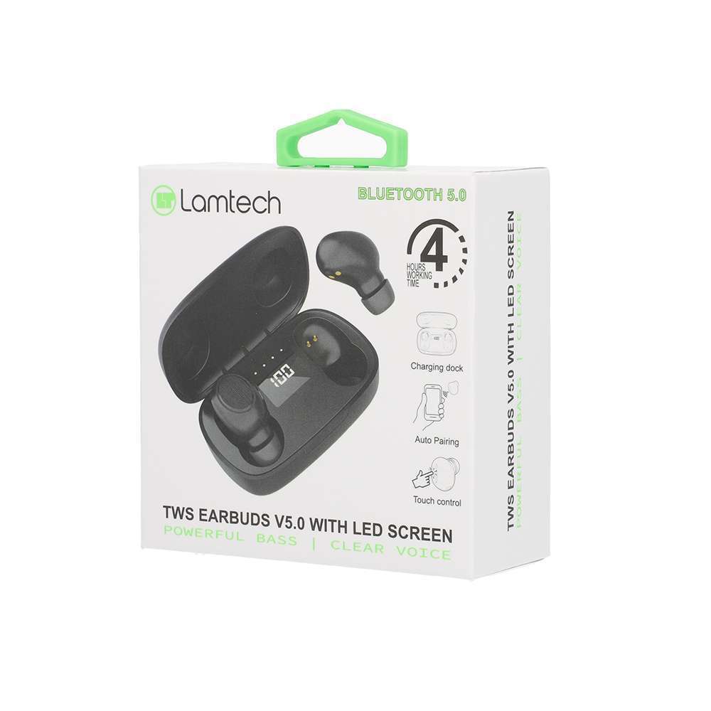 LAMTECH TWS EARBUDS V5.0 WITH LED SCREEN BLACK
