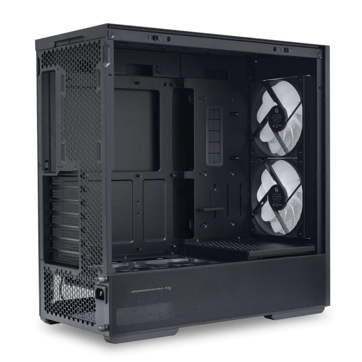 Front: 2 x 140mm ARGB fan (450~1900 RPM / DC 12V, 0.4A / LED 5V, 0.7A / 109.3 CMF / 3.3 mm-H2O / 34.86 dB-A)