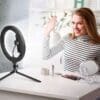 Η μαγεία του κύκλου του φωτός. Ο δακτύλιος LED Manta MRL002 είναι ένα εργαλείο με πολλές εφαρμογές. Είναι μια ιδανική λύση για άτομα που βγάζουν φωτογραφίες προϊόντων, selfies, ζωντανή ροή ή επαγγελματικό μακιγιάζ. Με τη βοήθεια της λάμπας μας, μπορείτε επίσης να εγγράψετε ταινίες σε πρωτοφανή ποιότητα, ακόμη και σε δυσμενείς συνθήκες φωτισμού. Μάθετε μόνοι σας ποιες μαγικές ιδιότητες έχει το φως. Επιτυχημένες φωτογραφίες σε όλες τις συνθήκες. Η ισχύς του λαμπτήρα μας είναι 48 watt, χάρη στα οποία εκπέμπει φως με ισχύ πάνω από 4.000 lumens. Επιπλέον, το εύρος θερμοκρασίας χρώματος του φωτός είναι από 2700 έως 5100 Kelvin. Ρυθμίζεται σε κλίμακα τριών επιπέδων: ζεστό, ουδέτερο και κρύο φως. Επιπλέον, το δαχτυλίδι μας έχει 10 επίπεδα φωτεινότητας. Μπορείτε να ρυθμίσετε βολικά αυτές τις λειτουργίες με ένα ενσύρματο τηλεχειριστήριο. Χάρη σε αυτά τα πλεονεκτήματα, μπορείτε να ρυθμίσετε τη λάμπα ώστε να φωτίζει με ακρίβεια το φωτογραφημένο αντικείμενο σε όλες τις συνθήκες. Χρησιμοποιήστε όπου θέλετε. Χάρη σε ένα τρίποδο ύψους 19 εκατοστών και ένα βιδωτό, εύκαμπτο στήριγμα τηλεφώνου, το φως κουδουνίσματος MRL002 μπορεί να χρησιμοποιηθεί με πολλούς τρόπους. Μπορείτε να το βάλετε σε ένα γραφείο ή, με το τρίποδο διπλωμένο, να το χρησιμοποιήσετε ως λαβή όταν τραβάτε selfies ή τραβάτε βίντεο. Η ίδια η κεφαλή τοποθέτησης της λάμπας περιστρέφεται προς όλες τις κατευθύνσεις, επιτρέποντάς σας να φωτογραφίζετε ακόμη και σε οριζόντιο επίπεδο. Αυτό είναι ένα πολύ χρήσιμο χαρακτηριστικό κατά τη λήψη φωτογραφιών προϊόντων. Επιπλέον, η λάμπα τροφοδοτείται μέσω σύνδεσης USB. Αυτό σας επιτρέπει να το συνδέσετε σε φορητό υπολογιστή, φορτιστή αυτοκινήτου ή power bank. Χάρη σε αυτό, γίνεται επίσης ένα κινητό εργαλείο που μπορεί να χρησιμοποιηθεί σε εξωτερικούς χώρους. Τεχνικά δεδομένα ΜΕΓΕΘΟΣ: 10 ‘(διάμετρος 26cm) ΙΣΧΥΣ: 48W ΧΡΩΜΑ: 3 ανοιχτά χρώματα (ζεστά, φυσικά, κρύα) ΦΩΤΕΙΝΟΤΗΤΑ: 10 επίπεδα φωτεινότητας ΤΡΟΦΟΔΟΣΙΑ: 5V USB ΠΡΟΣΑΡΜΟΓΗ ΓΩΝΙΑΣ: ΝΑΙ ΠΕΡΙΛΑΜΒΑΝΕΙ: Τρίποδο 19εκ Βάση στήριξης τηλεφώνου