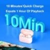 Για χρόνο κρίσης, μην ανησυχείτε ποτέ για τη δύναμη. Χάρη στη γρήγορη φόρτιση, πιέστε τα ακουστικά στη θήκη για 10 λεπτά και μπορείτε να έχετε 1 ώρα χρόνου παιχνιδιού.