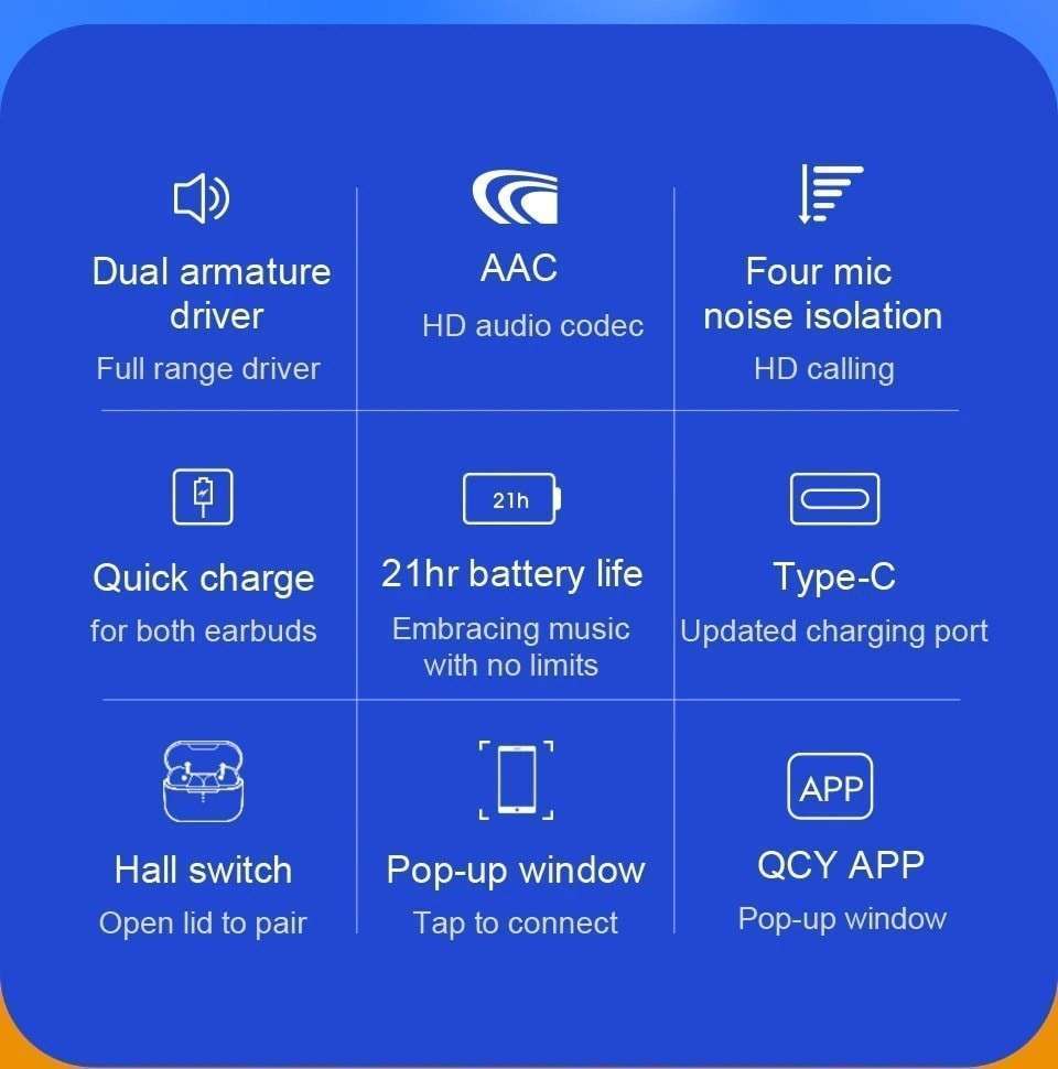 QCY T10 TWS BLACK Dual Armature Driver 4-mic noise cancel. True Wireless Earbuds Quick Charge 600mAh