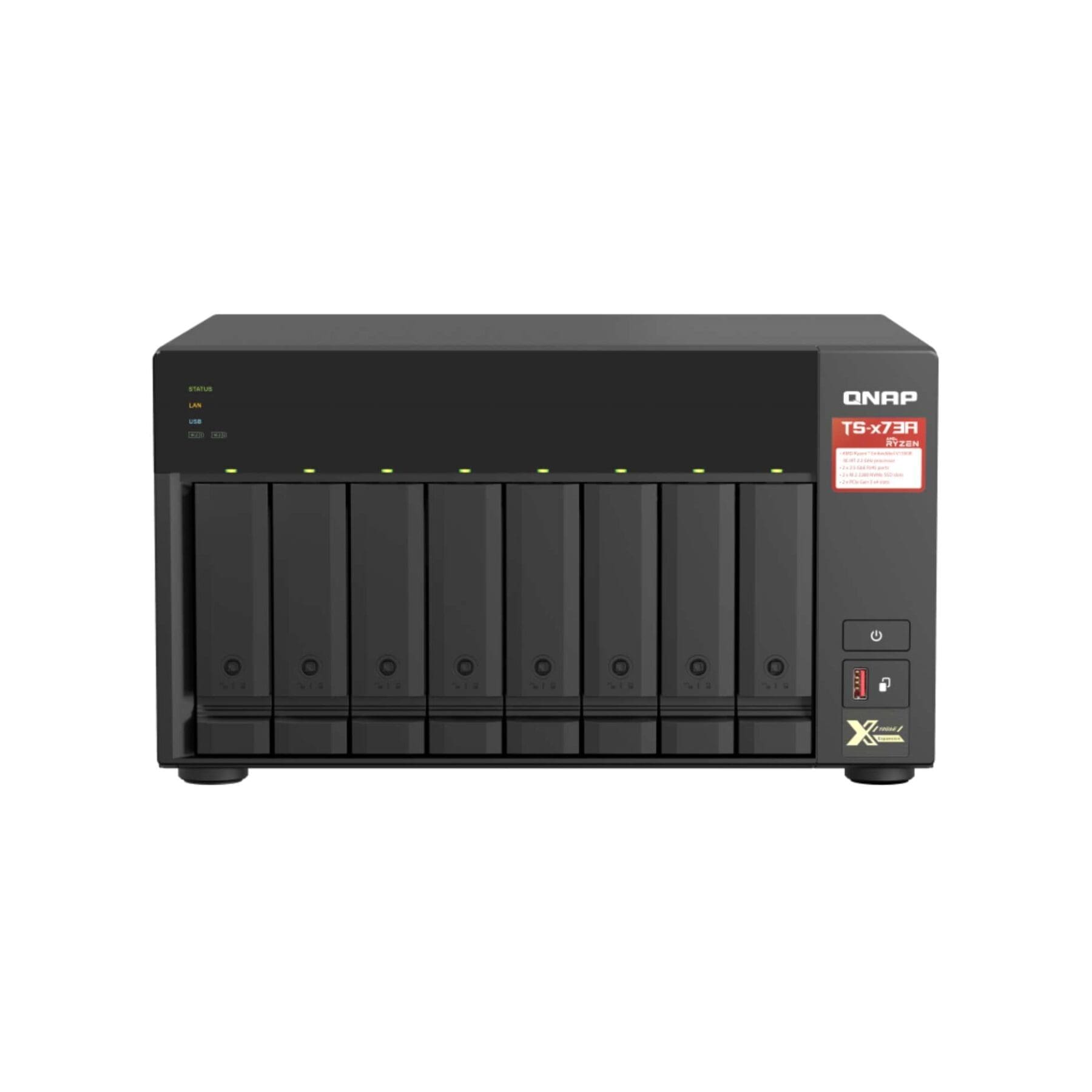 Το ΤS-873Α-SW5Τ εξοπλισμένο με AMD Ryzen™ quad-core 2,2 GHz και θύρες δικτύου 2,5 GbE NAS υποστηρίζει επέκταση M.2 NVMe SSD και PCIe για προσθήκη συνδεσιμότητας υψηλής ταχύτητας 10 GbE και M.2 SSD. Mε δυνατότητα επιλογής λειτουργικού συστήματος QTS ή QuTS hero για μεγαλύτερη ευελιξία και παραγωγικότητα!