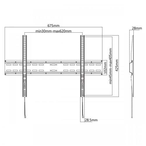 Όνομα μοντέλου: PLB-2546F Υλικό: Χάλυβας Χρωμα μαυρο Μέγεθος προϊόντος (mm): 28 x 675 x 425 Μέγεθος οθόνης: 37 ‘- 70’ / 94 – 178 εκ Μέγιστη. Φορτίο: 35kg VESA: 200×200 έως 640×400 Απόσταση τοιχώματος: 28 mm Ο πίνακας χωρίζεται: Ναι