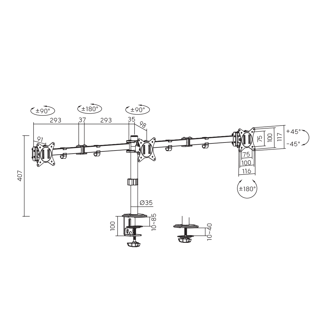 – Σχεδιασμένο για την ταυτόχρονη τοποθέτηση τριών οθονών, προσφέροντας ευελιξία και εργονομική άνεση.